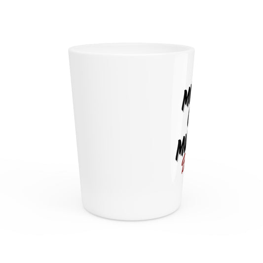 Milfs Or Muerte Shot glass -Blk & Red Print
