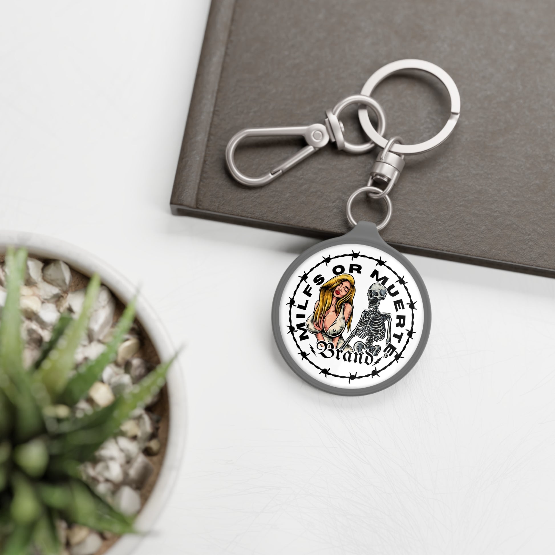 Milfs or Muerte Barbed wire Keyring Tag