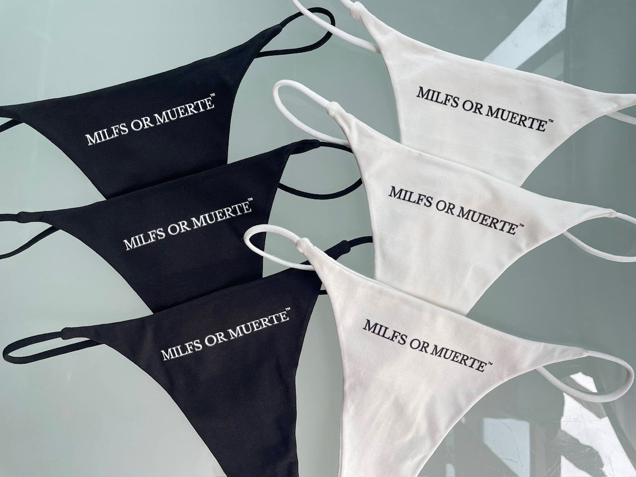 Thongs: Embrace minimalism with a bold edge in the Milfs Or Muerte thong collection. These daring designs offer barely-there comfort while eliminating visible panty lines, making them ideal for fitted outfits. Crafted with premium materials, our thongs combine sultry aesthetics with an ergonomic fit, so you can feel as good as you look. Choose from a range of striking designs that reflect our brand’s fearless approach to intimate fashion.
